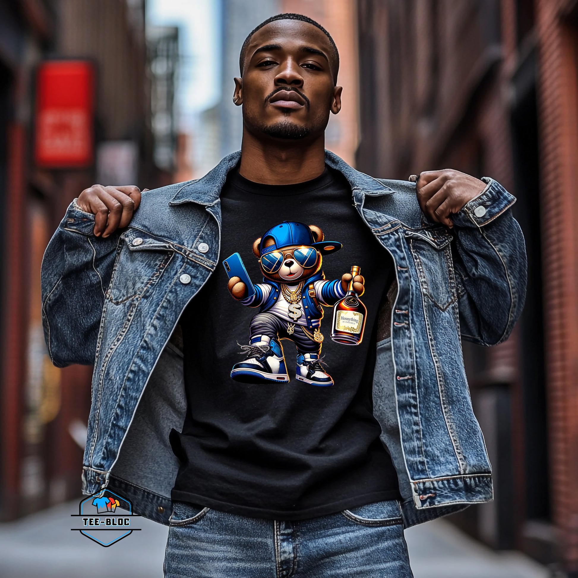 Boost your t-shirt game with our men's 'Bear On That Hennything Is Possible T-Shirts'. Featuring hip hop-inspired designs, these cool tees are perfect for those who want to make a statement. Show them how you stay fitted with our unique hip-hop cartoon series, graphic (Hennessy Bear) tees!